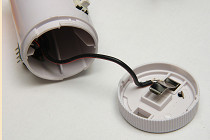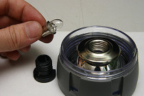懐中電灯のスクリューキャップ(レンズ)を外し、クリプトン球からLED豆電球に取り替える。次に電池をセットしてキャップを元通りにセットする。