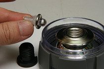 部品の要となるのが、スプリングワッシャ(ばね座金)だ。本来はネジの緩みを抑えるための部品だが、これをLEDの外周に付けることで、LEDが懐中電灯にフィットしやすくなり、マイナス極の端子になる。