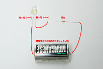 ・LEDを電池に直接つなぐと玉切れする。砲弾型のLEDの電流は20mA程度で、抵抗を入れて電流を制御しないと、電流が流れすぎてしまう。
