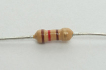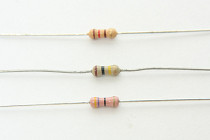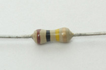 | 抵抗にはカラフルな帯が4本書かれているが、これは何Ωの抵抗かを示している。読めるとカッコイイ。あまり女の子にモテる特技じゃないのが残念だが…… |