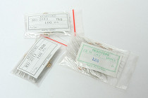 | LEDのスペックや電池の本数(電圧)に合わせて、挟み込む抵抗を変える | カラーバーが読めないと、どれが何Ωだか分からなくなってしまう | 100本単位で買うと、ビニール袋に何Ωと書かれているので安心。価格も1本1円程度と安い |