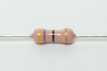 もし抵抗を1本単位で買って、家に帰ってからどれが何Ωだか分からなくなった場合は、次のように抵抗に書かれたカラーバーを読めば良い。