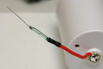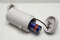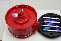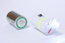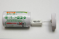 | 電池を4本使うタイプの懐中電灯をベースとしているが、そのうち1本に、抵抗入りの乾電池スペーサーを使っている | |