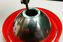 | パワーLEDのホルダーは大きいので、懐中電灯の反射板の穴を拡張する必要がある。このあたりは工作に慣れていない人だと難しいかもしれない | ||