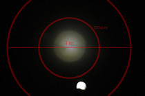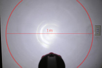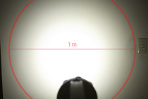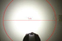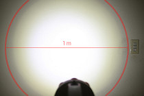| 1m先に向けると、およそ25cm程度の範囲が照らせる。明るさは15lxだが、暗闇で階段を照らすなどにはじゅうぶん使える |