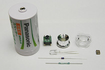 最後は単三電池1本で光る懐中電灯に挑戦。数百円で手に入るDC/DCコンバータと呼ばれる部品を使い、半田付けが必須となる。また電池のスペーサーの穴あけ加工などが必要なので、工作の腕に自信があるヒト向けだ。