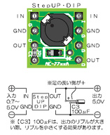 | 昇圧型DC/DCコンバータ 5V 0.2A出力 StepUP・DIP-Ver.2 | 1 | 500円 | 秋月電子 |