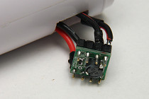電池をセットするスペーサー部分には、DC/DCコンバータを取り付ける穴とスイッチをつける穴、そして電線を通す穴を開ける。ドリルで大まか穴を開け金やすりで削るのが一番早いが、ドリルがない場合はキリで穴を開けてヤスリで拡張するか、半田ごてで樹脂を溶かして穴を開ける。