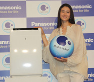 | 空質製品群で年間80万台という出荷計画を標榜している | ナノイー製品群の広告キャラクターには、女優の小雪さんを起用 |
