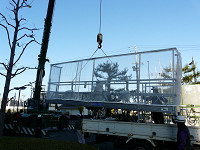 残りの文字の取り付けについては、玄関部に大型クレーンを設置する必要があるため、三洋電機の仕事納めを待って、12月29日以降に取り付けられることになる。
