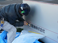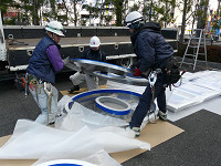 前日の夕方までにロゴ設置用のボルトを固定する作業を完了しており、この日はロゴの取り付け作業だけとなった。