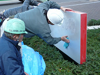| 取り付け作業を開始する | 取りつけ後の看板 |