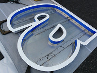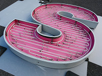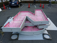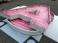 | 一文字ずつが土台部とカバー部とがセットになって現場に到着 | 土台部は電飾が取り付けられるような設計になっているが、なかには電飾管はない |