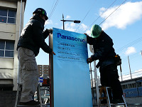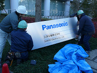 12月25日のPanasonicのロゴマークの取り付け作業の様子を写真で追った。