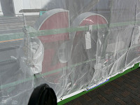 また、この日、Panの文字を布などで覆う作業もできなかったため、29日以降に作業が開始されるまで、「Pan」の3文字だけが掲示されたまま残ることになる。